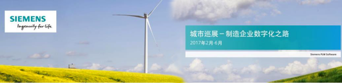 2017 年 2 月至 6 月,由西門子工業(yè)軟件事業(yè)部主辦的城市巡展,將走進 25 個城市和地區(qū),與廣大制造業(yè)企業(yè)一起暢談“制造企業(yè)數(shù)字化之路”,解答企業(yè)關(guān)于產(chǎn)品設(shè)計以及數(shù)字化制造的共通問題,探索企業(yè)快速實現(xiàn)數(shù)字創(chuàng)新的發(fā)展意義。我們誠摯邀請您與西門子公司一起攜手開啟企業(yè)數(shù)字化發(fā)展之路。期待您的蒞臨!