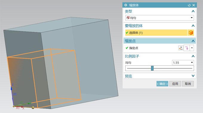 縮放體命令準(zhǔn)許我們按照一定比例改變模型的幾何大小,雖然這個(gè)命令實(shí)際上比較簡單,但是這個(gè)命令還是有很多用途的。NX11.0.1版本更新后又給我們帶來了一些改變,來幫助我們的設(shè)計(jì)更加方便和高效。