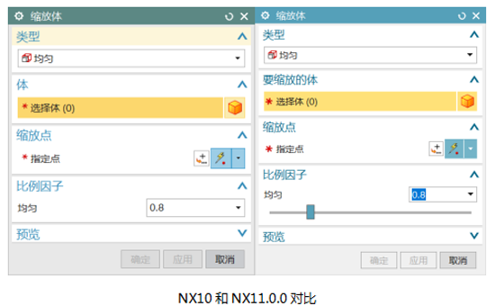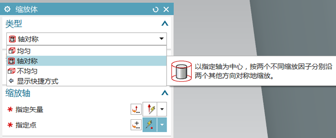總所周知,把鼠標(biāo)懸浮到NX的命令中的時(shí)候會(huì)對(duì)應(yīng)出現(xiàn)說明的文字和圖形示例。老版本的縮放體中是沒有幫助說明的,在新的版本中補(bǔ)充了這一不足,方便了新人使用。