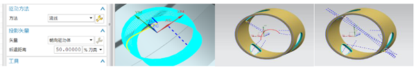 ? 投影矢量“朝向直線” 和“刀具軸”的內(nèi)部后退規(guī)則