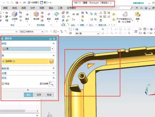 這個(gè)是用NX10打開的一個(gè)面板模型,下面我們用刪除面刪除其中一個(gè)面。
