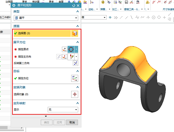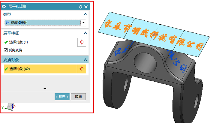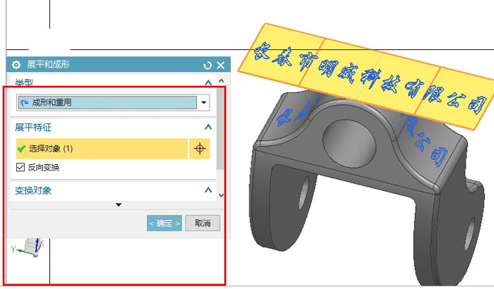 5點(diǎn)擊展平與成形命令 選取成形和重用。 6選擇展平特征