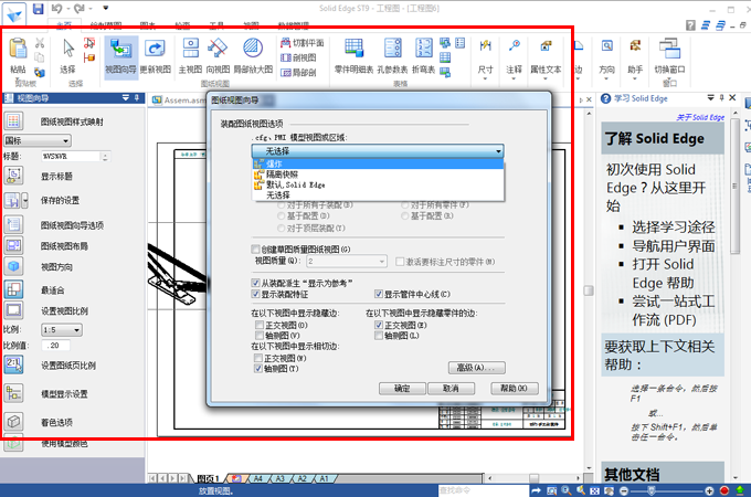 在圖紙視圖向?qū)нx項(xiàng)卡中選擇剛剛保存的爆炸顯示配置
