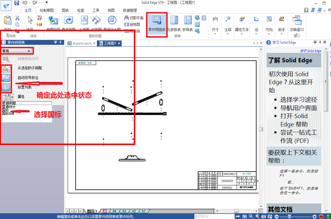 添加零件明細(xì)表,注意在屬性列表中選擇國(guó)標(biāo)。