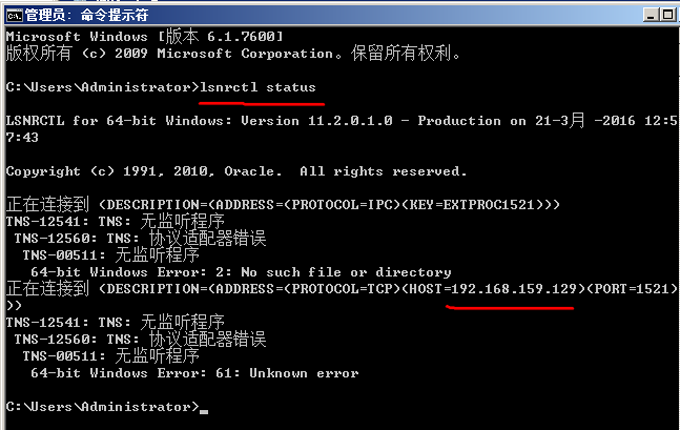 TNS - 00511:TNS:無(wú)監(jiān)聽(tīng)程序