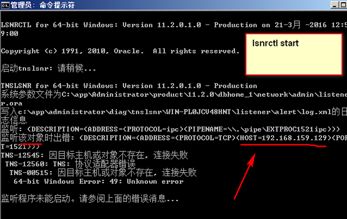 4.重新運(yùn)行l(wèi)snrctl start命令啟動(dòng)listener即可