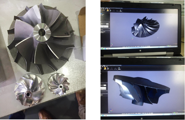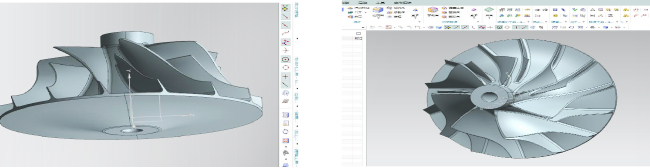 葉輪由于葉片曲面較多,傳統(tǒng)掃描方式十分麻煩,因此客戶最終采用了行創(chuàng)手持式三維掃描儀